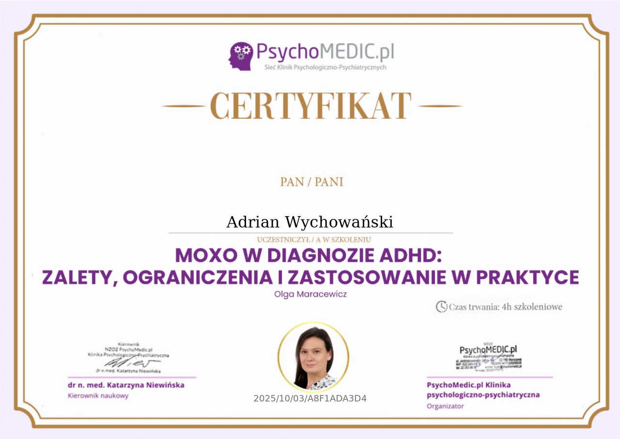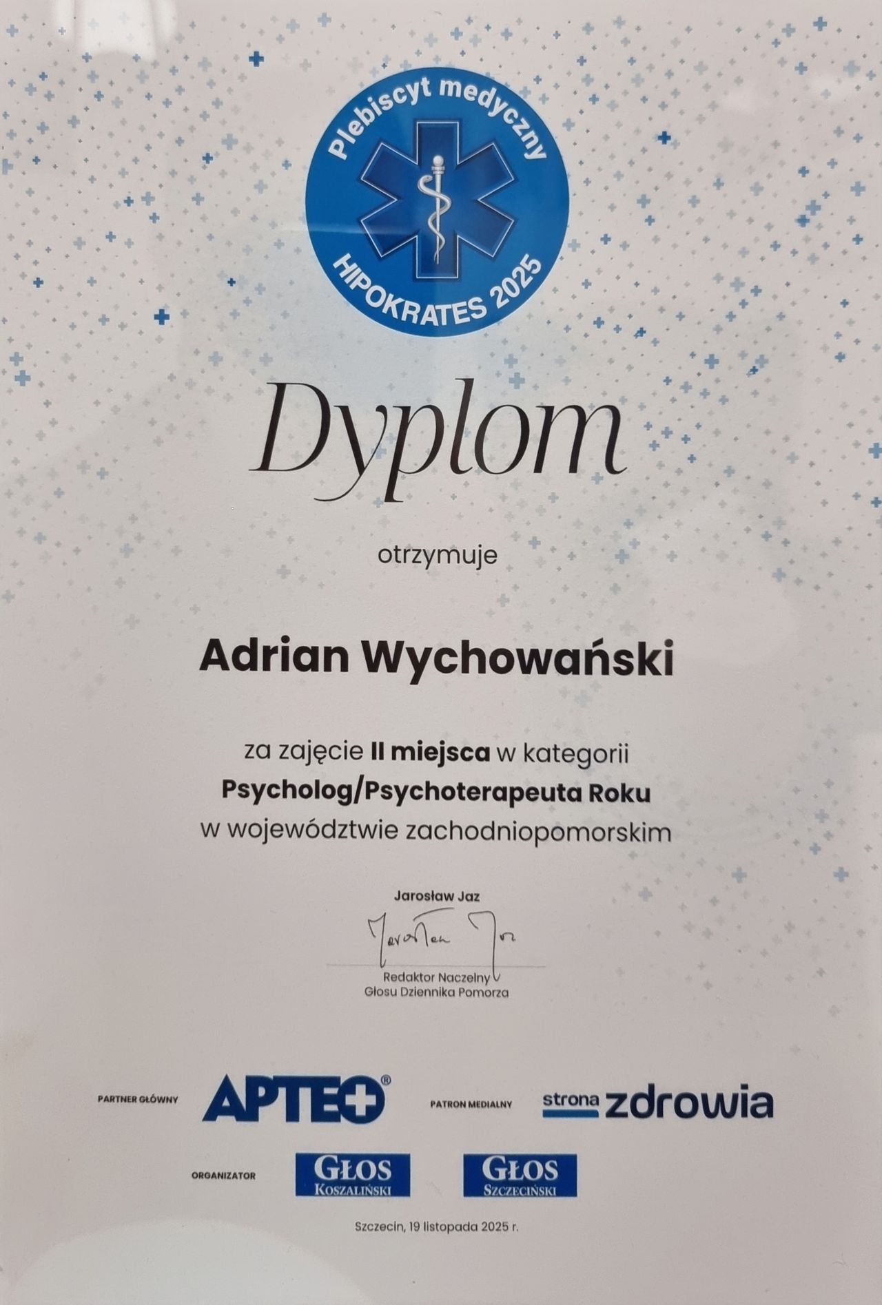 - LAUREAT PLEBISCYTU ORŁY MEDYCYNY 2024 - Gabinet Psychologiczny - Adrian Wychowański